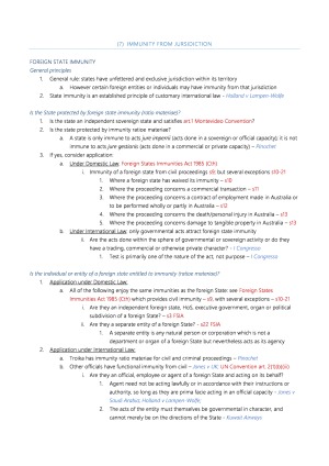 Detailed scaffolds for exam - step by step TOPICS: Sources of international law Law of Treaties International law and municipal law Legal personality, statehood and self-determination Title to territory State jurisdiction Immunity from jurisdiction Diplomatic immunity State responsibility Diplomatic protection Use of force Peaceful settlement