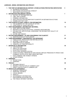 This comprehensive (and up-to-date) set of notes provides a detailed framework and guide to the Media Law: Defamation and Privacy course. The point is that everything is covered so that no detail is spared. Comprehensive case analysis is provided as well as relevant statutory provisions. Ensure that you do not miss out on any of the new content that may be introduced yearly by having the latest set of notes.