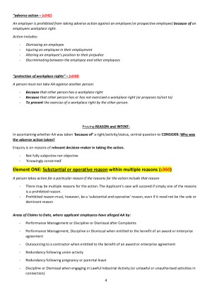 Full notes, properly and clearly structured, with clear highlighting on a series of key points essential to answering the question. Case-notes included under each Topic, with clear formatting and headings to highlight clearly the position of the Court and principles for the decision. Topics covered: - Topic 1: Employees versus independent contractors - Topic 2 Forming an employment contract - Topic 3 Employment regulation and minimum employment standards - Topic 4 Terms of the employment contract - Topic 5 The employee's implied duties - Topic 6 The employer's implied duties - Topic 7 Unfair dismissal under the Fair Work Act 2009 (Cth) - Topic 8 Termination and remedies - Topic 9 General protections (Adverse Action) under the Fair Work Act 2009 (Cth) - Topic 10 Anti-discrimination and bullying protections
