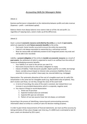 Topics include: - Management vs Financial Accounting - Company regulation - Business sustainability - Economic drivers - Accounting principles and theories - Financial statements (balance sheet, income statement, statement in change in equity, cash flow statement) - Accrual accounting - CVP analysis - Budgeting, costing and pricing