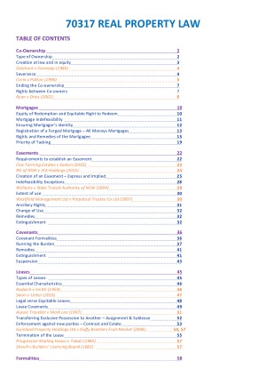 Real Property Exam Notes covering the 6 main topics tested in a detailed and concise manner. Important and relevant case law and legislation is colour coded for easy identification.