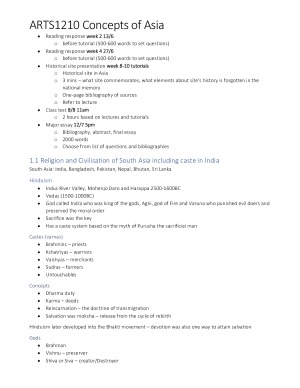 Summary Notes from lectures, tutorials, and readings 1. Religion 2. The Ramayana 3. Gender 4. Western Imperialism 5. Food & Identity 7. Asian Cities 8. Asian Concepts of Power 9. Orientalism