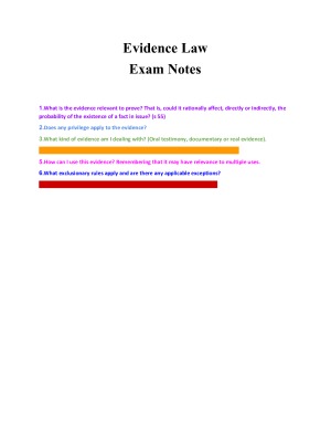 Just to give some fair context regarding the grade i received. I scored well in the final exam which was worth 50%. I fell down in the essay which contributed to a lower than anticipated mark. Nonetheless, these notes provide you with a succinct summary of the topics taught in evidence. it is framed to tackle and resolve problem questions effectively and chronologically, so as to minimise stress during exams. each topic laid out in these notes are designed to be 'encountered' methodically to avoid 'flipping pages back and forth'. TOPICS: on the roles and responsibilities of lawyers in the administration of justice. to evidence; proof and presumptions. issues to be addressed before trial : the first threshold to the admissibility of evidence. : professional relationships, sexual assault communication, legal professional privilege, immunities. and real evidence: How these types of evidence can be adduced. : competence and compellability; examination of witnesses. 8. The Accused as witness: right to silence; character evidence evidence: the exclusionary rule and exceptions. : the exclusionary rule; first-hand hearsay and exceptions. : the admissibility of hearsay evidence admitted for a non-hearsay purpose; admissions. evidence: the exclusionary rule; non-expert and expert exceptions. and coincidence evidence; the exclusionary rule and conditions for admissibility. and mandatory exclusion of evidence. warnings, comments and directions about evidence