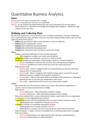 Topics Introduction; data types; sampling data Sampling data (ctd); Organising and visualizing data; Numerical descriptive measures Numerical descriptive measures; Introduction to probability Basic probability; Random variables Discrete probability distributions Continuous probability distributions Sampling distributions; confidence interval estimation Confidence interval estimation; Hypothesis testing: one-sample tests Hypothesis testing: one-sample tests, two-sample tests Hypothesis testing: two-sample tests (ctd) Simple linear regression (1) Simple linear regression (2); Introduction to Multiple regression Multiple regression (ctd); Conclusions