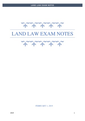 ** Key Cases Highlighted (FACTS, ISSUE, HELD) ** Key Legislation Highlighted ** Judgements and Reasoning interpreted in easy to understand sentences ** Additional notes to assist in understanding the content throughout the document ** Additional pages for your own notes to add Some exam summary notes/template (Very helpful in my exam) ******************************************************* A LOT OF TIME AND EFFORT WENT INTO THESE NOTES ******************************************************* W1: Interests in Land (Priority Rules) W2: ECNL (not examinable - not included) W3: Basic Elements of the Torrens System W4: Indefeasibility Provisions + Statutory Fraud W5: Paramount Interests + In Personam W6: Exceptions to Indefeasibility W7: Volunteers W8: Unregistered Interests + Caveat System W9: Co-ownership W10: Severance + Partition Extra Notes Revision Lecture Spare Notes