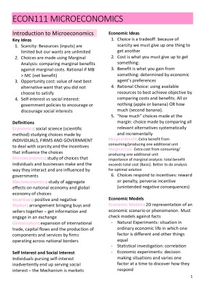 All weeks/lectures notes. Topics: - Introduction to Microeconomics - The Economic Problem - Demand and Supply - Elasticity - Ethics, Efficiency and Markets - Fairness and Government Intervention in Markets - GLobal Markets and Trade - Externalities and Public Goods - Production and Costs - Perfect Competition - Monopoly - Monopolistic Competition - Oligopoly