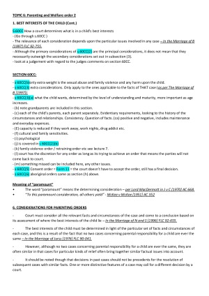 Detailed family law notes including: Intro, Commonwealth and WA Act, Family Law Court WA (and Commonwealth), Marriage, separation and divorce, Parental powers and responsibilities, Parenting and welfare orders, family violence, child support, spousal and child maintenance, property proceedings.