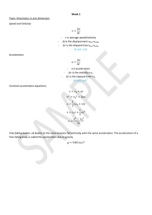 -Summary from Week 1 - Week 12 -It focuses on the main key points you need to know for the final exam. Everything you need to know has already been summarised. -Physics can be hard, but my notes are simple to understand and doesn't require you read paragraphs to get to the main idea. -Affordable price -I received a HD by revising these notes for my exams Week 1: Kinematics in one dimension Week 2: Forces & Rotational dynamics Week 3: Work and Energy Week 4: Fluids Week 5: Heat Week 6: Thermodynamics, Waves and Sound Week 7: Electric forces & Electric fields, Electric potential energy & Electric potential Week 8: Electric circuits Week 9: Wave Interference Week 10: Polarisation, Reflection, Dispersion Week 11: Lenses Week 12: Atomic structure