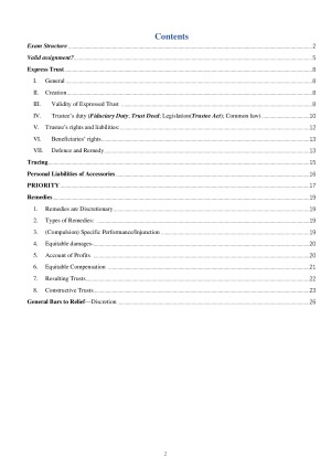 I got a D (78) in the final exam and 76 overall. - Designed every step to answer the question in the final exam - A very helpful structure for the final exam. - Covered all the topics that would be tested in the exam, which could be checked in the sample. - Used pretty helpful tables and flow charts to help u have a better picture of what u learned in Equity and Trust. - ONLY 27 Pages(Colored and Detailed)