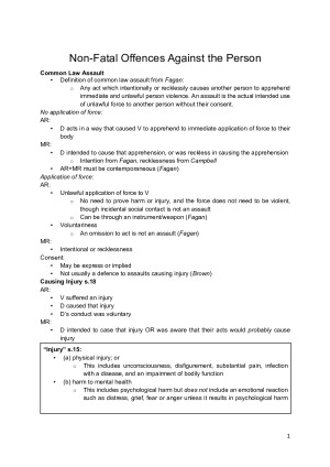 HD Criminal Law notes, covers: - Non-fatal offences against the person - Homicide - Self-Defence - Sexual Offences - Property Offences - Attempts - Criminal Procedure