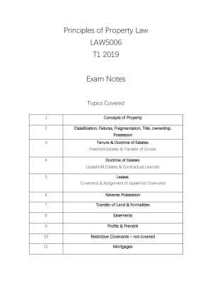 Property Law Exam Notes with Steps and Writing Prompts Check Sample for Topics Covered.
