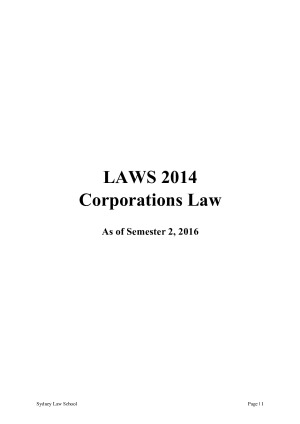 Everything you will need to get a HD in Corporations (LAWS2014 and LAWS5014). You can rely on these notes for the multiple choice mid semester exam and 3 hour final exam. It includes how to approach certain questions and have been clearly formatted for easy understanding and learning. Includes a clear table of contents. Please see the sample with shows the Table of Contents and Topic 2.