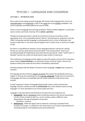 Concise, clear and detailed lecture notes (including online and face to face lectures) Contains all lecture topics: - Introduction to language - Phonology - Speech recognition - Spoken word recognition - Phonology in reading - Orthographic processing - Morphology - Syntax - Sentence processing - Bilingualism - Cognitive neuropsychology I hope these help!