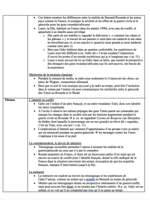 Summary notes on the case study novel "Petit Pays" by Gaƫl Faye for 97407 Francophone Identities in Conflict. - Written in French (with some English explanations) - Summarised under useful headings characters, themes, text characteristics, important quotes, notes on the author, as well as a text summary - Includes explanations and notes useful for assignments - Summarised from class notes, lectures and further research - Easy to read Useful for the Oral Exam, Response Papers, and in-class assessments