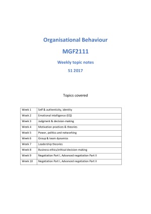 MGF2111 Organisational Behaviour weeks 1-12 Revision notes