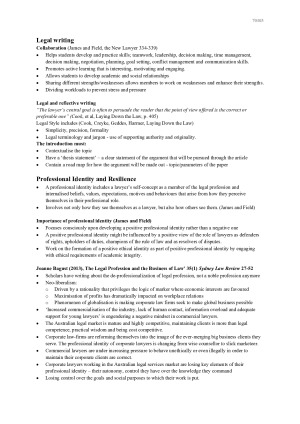 Detailed ethics, law and justice notes very useful for class participation and the final exam. Includes class questions and answers and the topics: Legal Writing Professional Identity and Resilience Ethics, morals and emotions Access to Justice: Economic Issues Access to Justice: Social/Cultural Issues Judges Regulation and Admission (Cab Rank Rule) Discipline The Lawyer-Client Relationship: The Retainer & Duty of Representation, Duty to Account, Duty to Advise Lawyer-Client Relationship: Duty of Competence and Care, Duty of Loyalty Duty to Court and the Proper Administration of Justice The Lawyer’s Duty to Colleagues and Third Parties