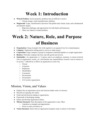 I was able to place 2nd in the entire cohort using this set of notes. Topics: - Megatrends & Wicked Problems - Internal Analysis - External Analysis - Strategy - Sustainability - Evolving Workplace - Urbanisation - Design Thinking - Entrepreneurship