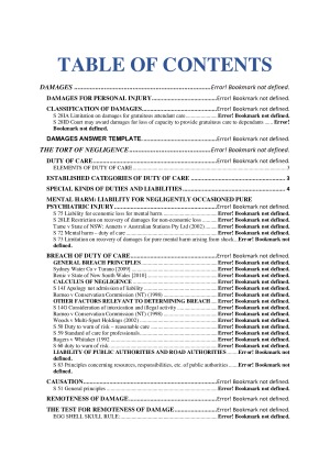 Notes include all examinable content from 2019. Topics included are: - damages - Negligence - Breach of Statutory Duty - Vicarious liability Notes are derived from prescribed readings, lectures, seminar guides, legislation, cases etc. Notes also include exam answer templates for each examinable topic. One example is included in the sample document.