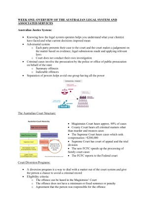 Notes were created utilising information gathered from lectures and seminars. Topics include: - Australian Legal System and Associated Services - Ethical Issues in the Forensic Context - Engaging Forensic Populations - Monitoring and Managing Risk - Working in the Area of Sexual Violence - Working in the Area of Family Violence - Working with Alcohol and Other Drug (AOD) Issues - Working with People with Mental Illness and Disability - Working with Young People - Working with Families - Cross-Cultural and Indigenous Issues