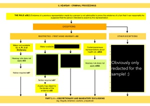 - Colour coded - Exam scaffold --> means you don't have to worry about identifying niche issues. Just step through the topics' scaffolds and you'll have a really solid exam answer to any fact matrix. - Notes made from all lecture cases; 3 x previous student notes and authorities noted by the tutor. -Topics covered: Hearsay; Types of Evidence; Witnesses; Accused as a witness; Relevance; Hearsay; Opinion; Coincidence & tendency; Credibility and Privilege. - HD exam result. Theses notes will help you come back from a dud essay mark. -Best of luck for tricky Evidence Law! :-)