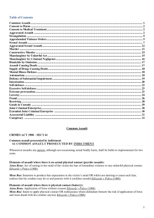 Concise notes perfect for bringing into the final exam for the problem question section. For every single substantive offence it sets out all the tests and its authority. It also includes all relevant legislation that would be required to reference in the exam. It's holistic and covers everything you need to answer the problem question, whilst being short enough to make it workable to use while in an exam.