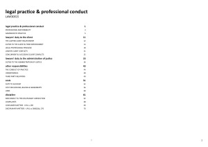 - professional responsibility - admission to practice - duty to the client - duty to the administration of justice - other responsibiolities - costs - discipline