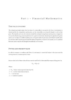 Structured in accordance with the four primary topics of the FINS1613 course, these notes are largely based from the lecture slides and course outline, extended with further detail and content from the Fundamentals of Corporate Finance textbook, and for the more complex theory, wider reading from a number of sources. The notes focus on being concise and easy to digest with regards to the simpler material, while becoming detailed and more explanatory as the course goes on, providing in depth and often unique examples where necessary. All non-generic equations are broken down and their components explained. More complex equations are related back to theory and often provided in context of an example.