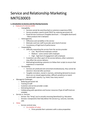 Service and Relationship Marketing - H1 Notes - Easy to understand, full course covered, lots of examples