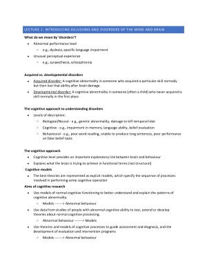 Lecture 1: Introducing Delusions and Disorders of the Mind and Brain Lecture 2: Dyslexia Lecture 3: Aphasia Lecture 4: Specific Language Impairment Lecture 5: Autism Lecture 6: Amnesia Lecture 7: Synaesthesia Lecture 8: Agnosia Lecture 9: Delusions Lecture 10: Schizophrenia Lecture 11: Hypnosis Lecture 12: Disorders of the self