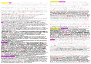 Succinct 4 page summary of all topics covered weeks 1-13 which helped me achieve a HD in the final exam. Easy to follow guide for structuring answers to problem questions including notes on possible essay topics. The following topics are covered: - Trespass and Case Actions involving people - Battery - Assault - Action on the case for wilful injury - False Imprisonment Actions involving land - Nuisance - Trespass to land Trespass to Goods - Detinue - Conversion Negligence - Duty of Care; Donoghue v Stevenson - Standard of Care; the Negligence calculus - Standard of Care; the Reasonable person - Factual causation - Pure Mental Harm - Pure Economic Loss - Statutory Authorities - Scope of Liability - Particular duty areas - Vicarious liability Defences - Contributory Negligence - Intoxication - Voluntary Assumption of Risk - Obvious Risk - Inherent Risk Essay Topics: - Objectives of tort law - Purpose/Themes - IPP Report - Tort Reform Legislation
