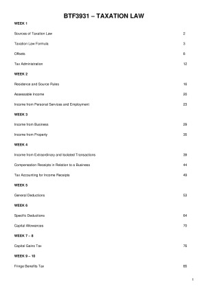 BTF3931/BTC3150 Taxation Law Summary Notes For Open Book Exam