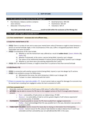 Includes full case summaries and checklists for every topic. Checklists are in tables with rule statements and case analogy statements - ready to be taken straight into the exam. Topics Include: Duty of Care, Breach, Causation, Contributory Negligence, Defences & Vicarious Liability