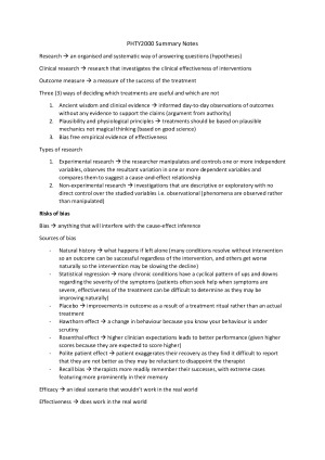 10 pages of summary notes of the entire semester including an A4 page of notes ready to take into the final exam - risks of bias - validity and reliability - placebo - randomised controlled trials - internal validity (methodological filters) - treatment effect statistics - determining difference between groups - evidence for treatment effects in clinical trials - external validity - evidence about diagnosis - evidence about prognosis - qualitative research - systematic reviews and meta-analysis - A4 page of condensed summary notes for use in the final exam