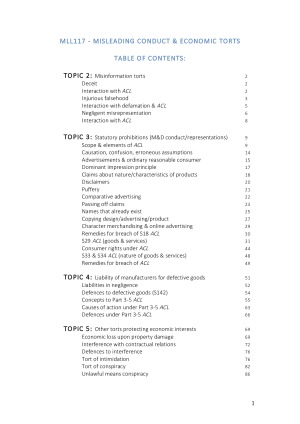 Includes the following topics: (2) Misinformation torts. (3) Statutory prohibitions (M&D conduct/representations). (4) Liability of manufacturers for defective goods. (5) Other torts protecting economic interests. Color coded (blue = cases, red = legislation).