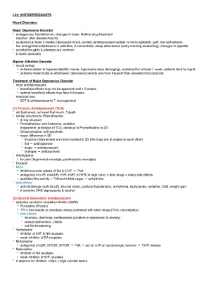 These notes (Part 2) comprise Lectures 16-30 while the remaining notes are available in Part 1 due to size constraint on this site. Notes are clearly organised and written in point forms. Each lecture note is 2-4 pages long yet contains all essential info from lecture slides + explanation stressed by lecturers + relevant diagrams. I solely revised these notes for the MSTs & final exam and managed to get H1 (90%) for this subject :) TOPIC LIST L16: Ion channels L17: Neurotrophic factors L18: Neurotrophic factors L19: Neurotoxicity L20: Neurotoxicity & immune system L21: Parkinson’s disease L22: Alzheimer’s disease L23: Glia as therapeutic targets L24: Antidepressants L25: Sedatives, hypnotics & anxiolytic agents L26: Reinforcement & addictive disorders L27: Reinforcement & addictive disorders L28: Motor neurone disease L29: Anti-epileptic drugs L30: Pathophysiology of schizophrenia
