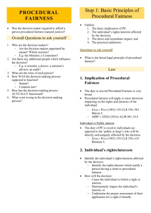 A step-by-step guide to problem-solving for an Administrative Law exam question. In-depth and extremely helpful for any law student. Extensively covers: - Procedural Fairness; - Standing; and - Bias.