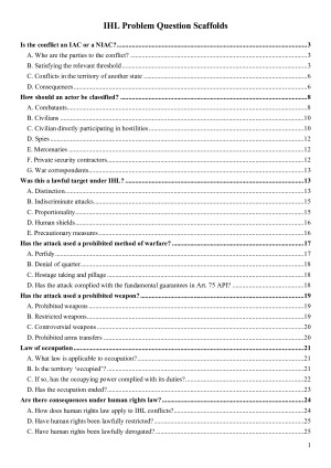 Comprehensive scaffolds for the IHL component of War Law. Handy for any problem question (or as the basis for any essay), as they will take you step-by-step through each step (characterisation of conflict; characterisation of conduct/weapons; enforcement).