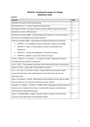 Detailed and colour coordinated EDF4121 notes from tutes and prescribed readings. All notes organised neatly into sections with subheadings. Includes all the necessary information to complete the assignments. Notes have been summarised concisely, and are easy to read