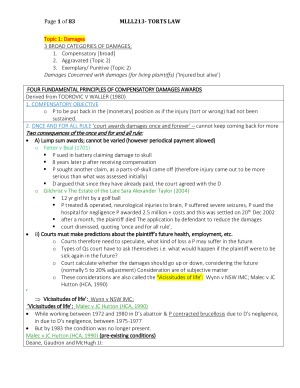 COLORED, CONCISE, ACCESSIBLE NOTES. SUMMARIZED CASES ELEMENT BY ELEMENT DIAGRAMS TOPIC 1: DAMAGES TOPIC 4B: VICARIOUS LIABILITY TOPIC 5: DUTY OF CARE TOPIC 6: BREACH OF DUTY OF CARE TOPIC 7: CAUSATION & LIABILITY OF TORTFEASORS TOPIC 8: REMOTENESS OF DAMAGE TOPIC 9A: OMISSIONS TOPIC 9B: PURE MENTAL HARM TOPIC 10: DEFENCES TO NEGLIGENCE TOPIC 11: BREACH OF STATUTORY DUTY