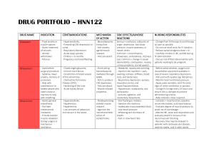 I found this incredibly useful on placement so I would consider taking a look! Includes all drugs mentioned throughout the trimester in this unit with a clear explanation on the following for each medication: - Drug name - Indication - Contraindications - Mechanism of Action - Side effects/adverse reactions. - Nursing responsibilities. It is also colour coordinated for the weeks in which the medications were learnt!