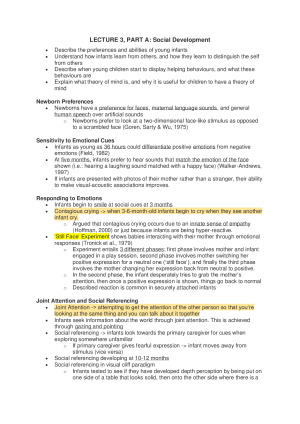 Lecture notes for the entire semester, completed at a GPA 7 standard. Layed out in an easy-to-read format with sections for each lecture and week. TOPIC LIST: DEVELOPMENTAL PSYCHOLOGY - Infancy & Attachment - Language Development & Adolescence - Social Development & Moral Development - Cognitive Development & Later Life Development CLINICAL PSYCHOLOGY - Psychological Therapies & Anxiety and Mood Disorders - Schizophrenia & Street and Coping - Health in Later Life & Measurement and Intelligence - Personality SOCIAL PSYCHOLOGY - Nonverbal and Verbal Channels & The Self - Social Cognition & Attitudes - Persuasion - Prejudice & Stereotyping & Aggression and Prosocial Behaviour