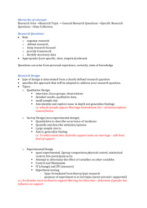 Detailed dot-point notes Topics Covered: Paradigms Research Design Ethics Quantitative Measures Surveys Experimental Research Research Report Structure Infernal Statistics Non-Reactive Research Similarities/Differences between Qualitative and Quantitative Research
