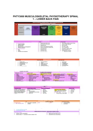 PHTY3000 Musculoskeletal Spinal 1 - Lower Back Pain Entire Semester Notes