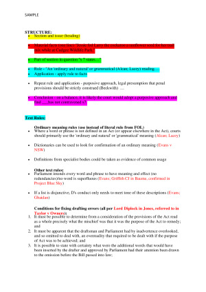Notes utilised in part A of Pub Law Exam to structure answers. Includes summary of text rules, context rules, purpose rules, legal presumption rules and Latin Maxims. Rules listed in document can be quoted in exam.