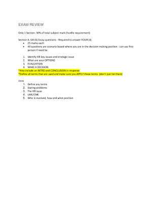 IHRM Notes from 2019 - Covers all lectures from Week 1-12 SECTIONS COVERED IN THE EXAM 1. Globalisation and HRM 2. Cultural context of global HRM 3. Institutional context of global HRM 4. Organisational context of global HRM 5. Transfer of HRM across boundaries 6. HRM in international joint ventures, mergers and acquisitions, and collaborative alliances 7. Global Staffing 8. Global HR development 9. Global performance management + compensation 10. International mobility and global careers 11. International employee representation and CSR
