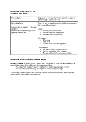MKTG20004 NOTES SEM 2 2019 Content is split into the 3 main sections of the course: 1. Preparation Phase: Week 2,3,4 2. Action Phase: Week 5,6 3. Conclusion Phase: Week 7,8,9,10,11