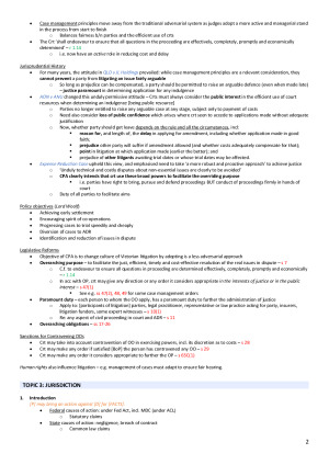 Detailed but concise exam notes that include step-by-step problem solving, as well as suggested introductory, linking & concluding sentences. Topics covered: - topic 1: disputes & the civil justice system - topic 3: jurisdiction - topic 4: instituting proceedings - topic 5: parties & causes of action - topic 5: examination of witnesses - topic 7: service - topic 8: pleadings - topic 9: discovery - topic 10: interlocutory applications - topic 11: disposition without trial - topic 12: costs These notes cover all lectures & readings. They also include case summaries.