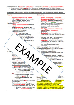 All the notes you need to get a good grade in this unit. Covers: - dualism - uncertainty vs risk - concentric circles - how China succeeded - Solow and Harrod growth model - Turning point - Rostow v Gerschenkron - policies of the Tokugawa family - Twin problems of underdevelopment - low level equilibrium trap - financial institutions of the Japanese, Chinese and South Korean economies - transaction cost theory