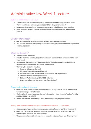 What is Administrative Law Judicial Review Justiciability Standing Grounds for Judicial Review Consequences of Unlawful Action (remedies) Jurisdictional Error Privative Clauses Merits Review Administrative Review Tribunals Ombudsmen Information Disclosure
