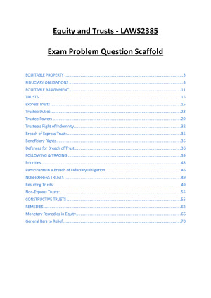 These notes will get your through the Equity final exam problem question section! Set out so that you never miss any key ratios, legislation or relevant discussion materials.